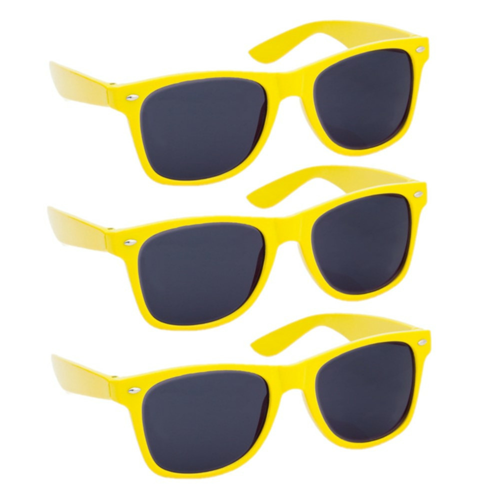 10 stuks hippe Party zonnebril – geel – plastic – UV400 – verkleedbril – carnaval/verkleed. Deze hippe party zonnebril met geel montuur is perfect voor feestjes, festivals en carnaval. Het lichte plastic frame zorgt voor een comfortabele pasvorm, terwijl de UV400-bescherming je ogen beschermt tegen de zon. Ideaal als verkleedbril of als betaalbare festival accessoire. Geschikt voor volwassenen en eenvoudig te combineren met elke outfit.