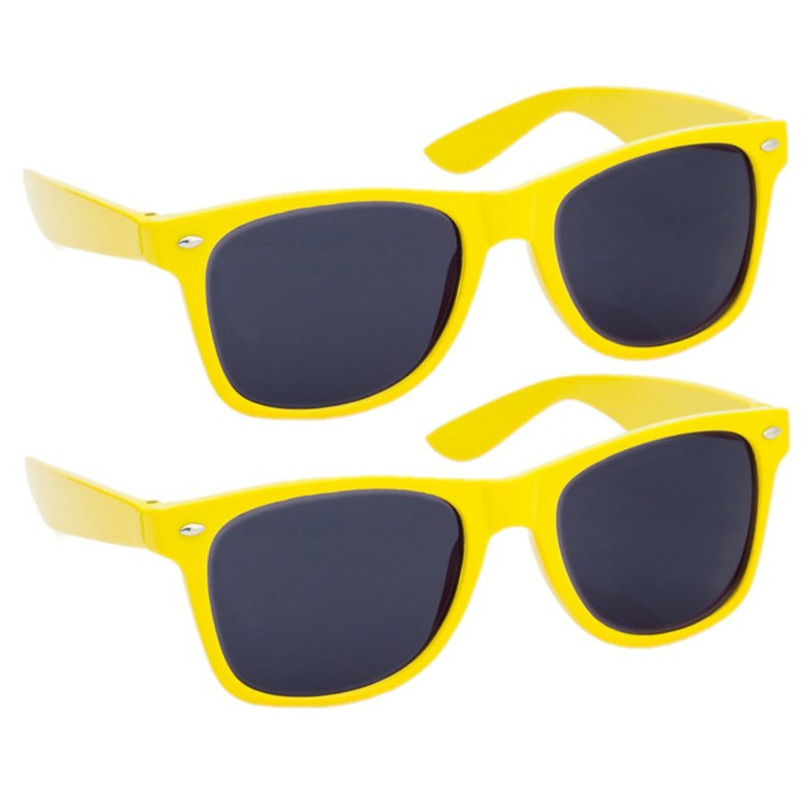 1x hippe Party zonnebril – geel – plastic – UV400 – verkleedbril – carnaval/verkleed. Deze hippe party zonnebril met geel montuur is perfect voor feestjes, festivals en carnaval. Het lichte plastic frame zorgt voor een comfortabele pasvorm, terwijl de UV400-bescherming je ogen beschermt tegen de zon. Ideaal als verkleedbril of als betaalbare festival accessoire. Geschikt voor volwassenen en eenvoudig te combineren met elke outfit.