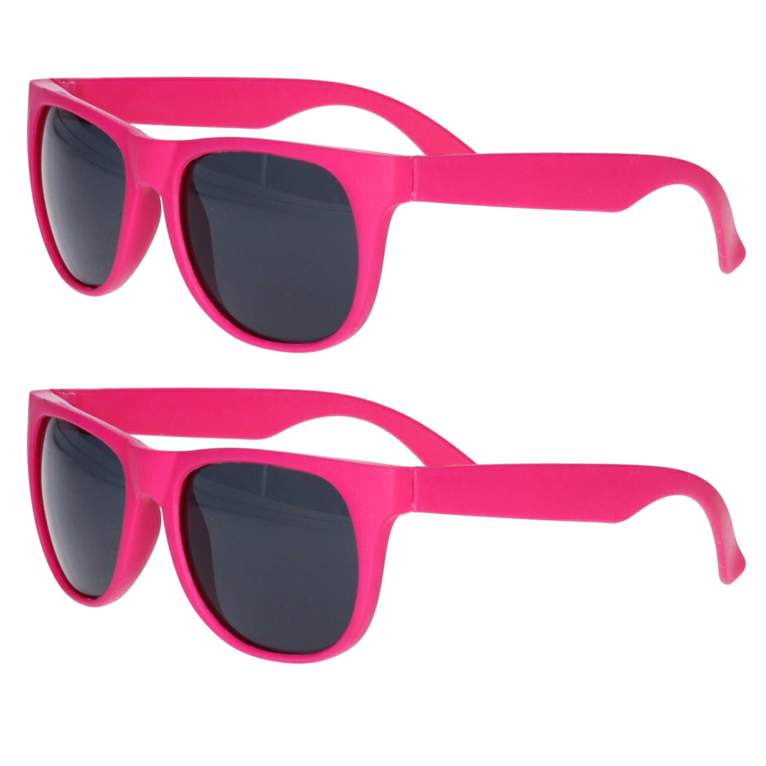 2x party zonnebril – fuchsia roze – kunststof – UV400 – verkleedbril voor volwassenen. Hippe en voordelige party zonnebril met een fuchsia roze montuur. Gemaakt van lichtgewicht kunststof en voorzien van UV400 bescherming tegen de zon. Ideaal als verkleedbril voor carnaval, festivals of themafeesten. Geschikt voor volwassenen.