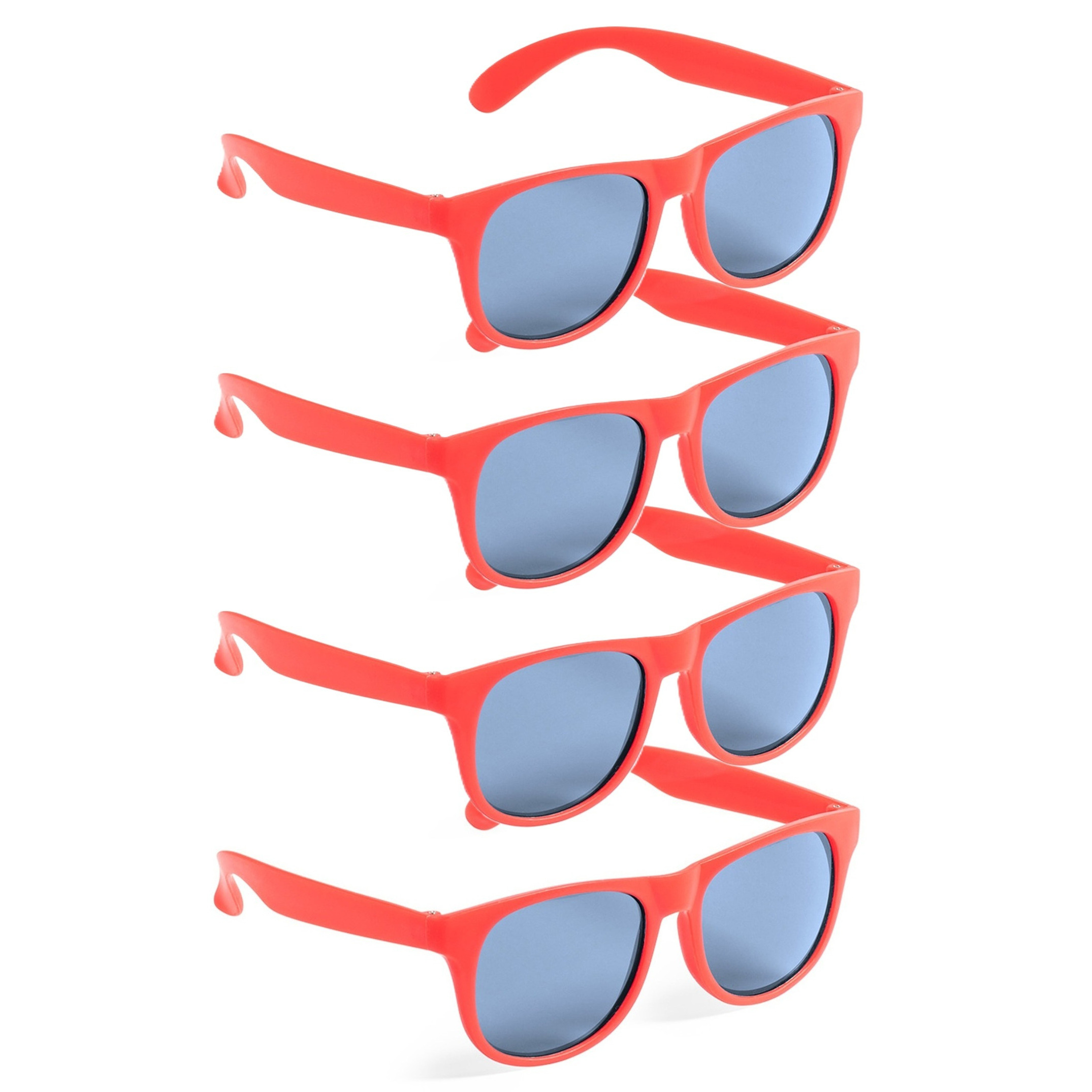 4x party zonnebril – rood – kunststof – UV400 – verkleedbril voor volwassenen. Hippe en voordelige party zonnebril met een rood montuur. Gemaakt van lichtgewicht kunststof en voorzien van UV400 bescherming tegen de zon. Ideaal als verkleedbril voor carnaval, festivals of themafeesten. Geschikt voor volwassenen.