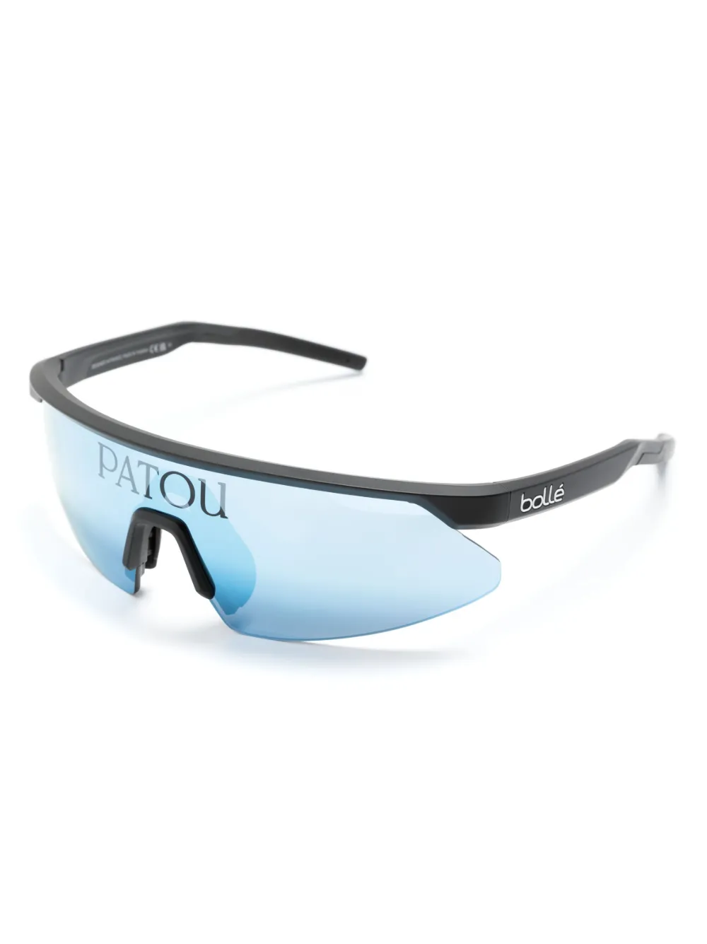Zwart, blauwe glazen, antireflecterende glazen, glazen met UV-bescherming, logoprint op het pootje, logoprint op de voorkant, neuskussentjes en rechte pootjes. Deze bril wordt verkocht met een beschermhoes..