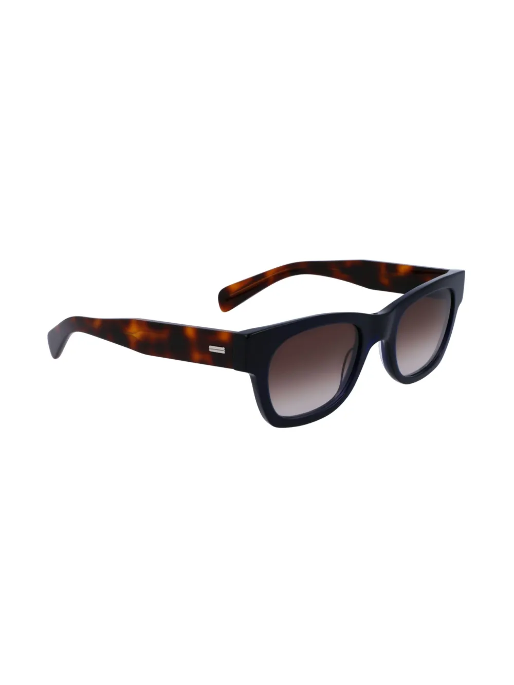 middernachtblauw/Havana bruin schildpad montuur vierkant montuur glazen met kleurverloop glazen met UV-bescherming logoprint op de brillenpoot rechte pootjes gebogen uiteinden