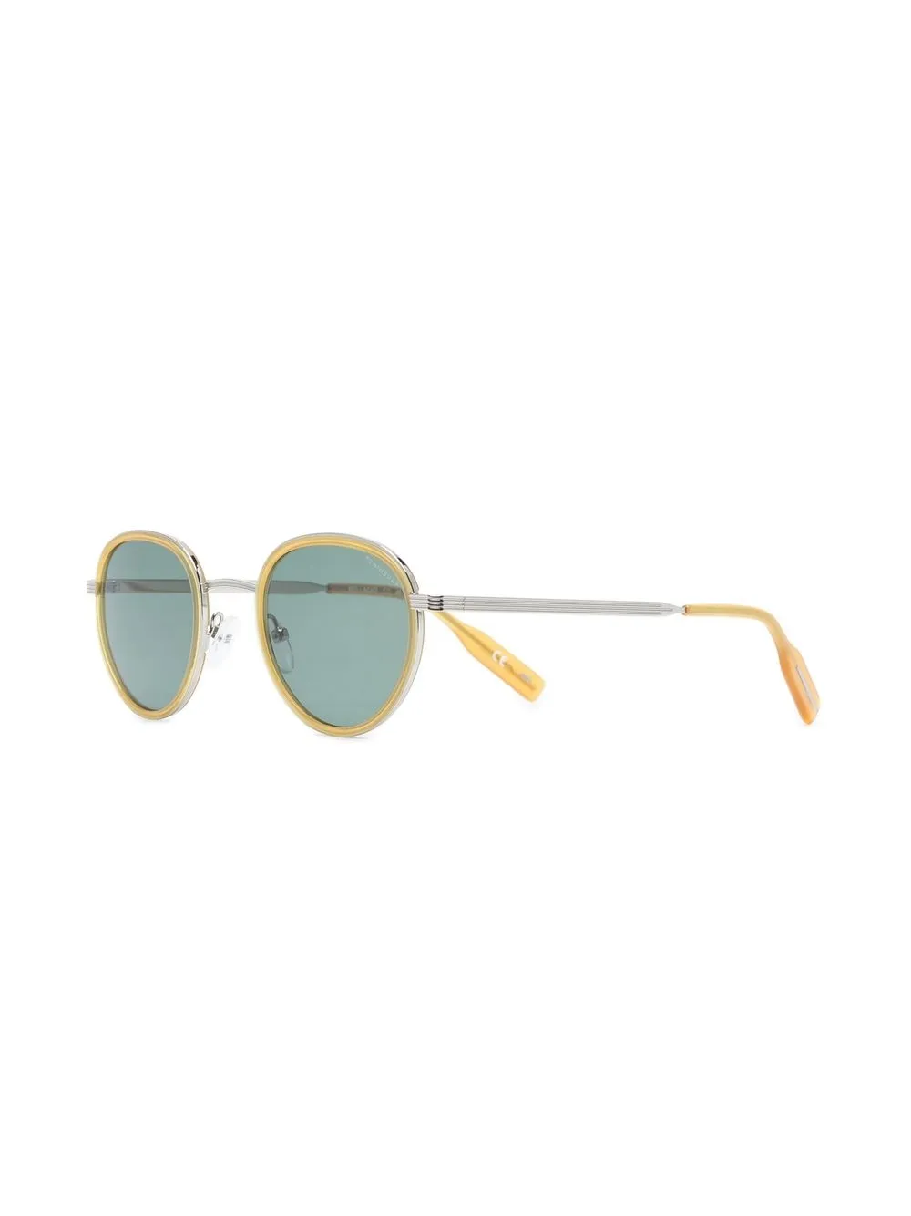 Geel, acetaat, metaal, rond montuur, logo versiering en glazen met UV-bescherming. Deze bril wordt verkocht met een beschermhoes.. .