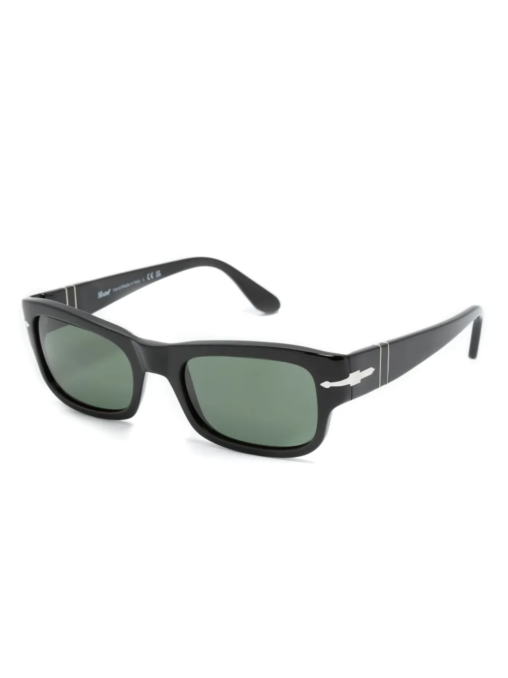 zwart acetaat rechthoekig montuur groengetinte glazen glazen met UV-bescherming lens sticker pootjes fhmet gegraveerd logo oversized pootjes gebogen uiteinden Deze bril wordt verkocht met een beschermhoes.