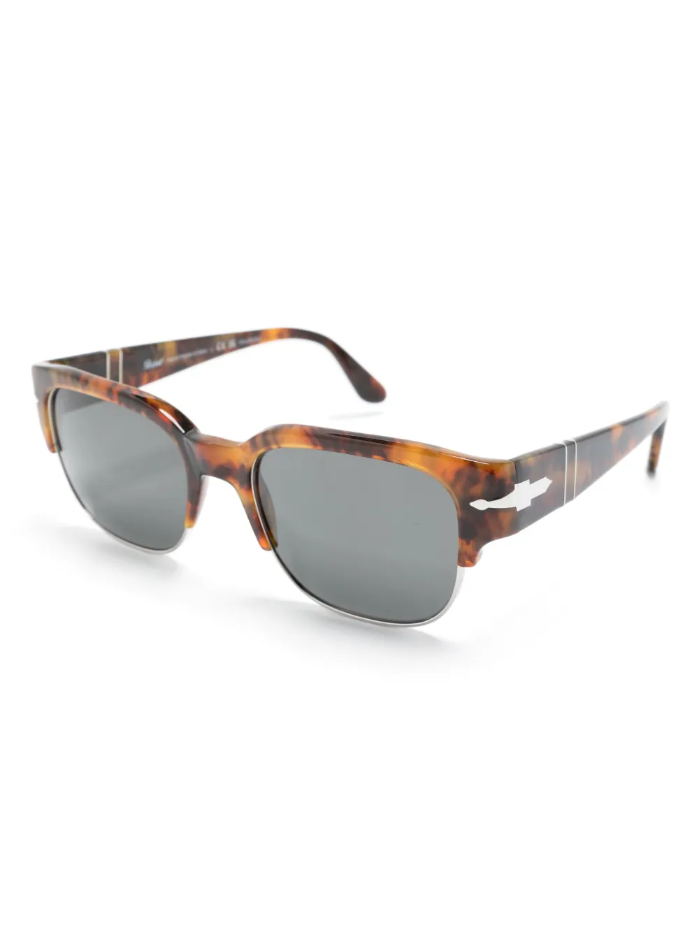 Bruin, schildpad montuur, grijze glazen, vierkant montuur, rechte pootjes en gebogen uiteinde. Deze bril wordt verkocht met een beschermhoes..
