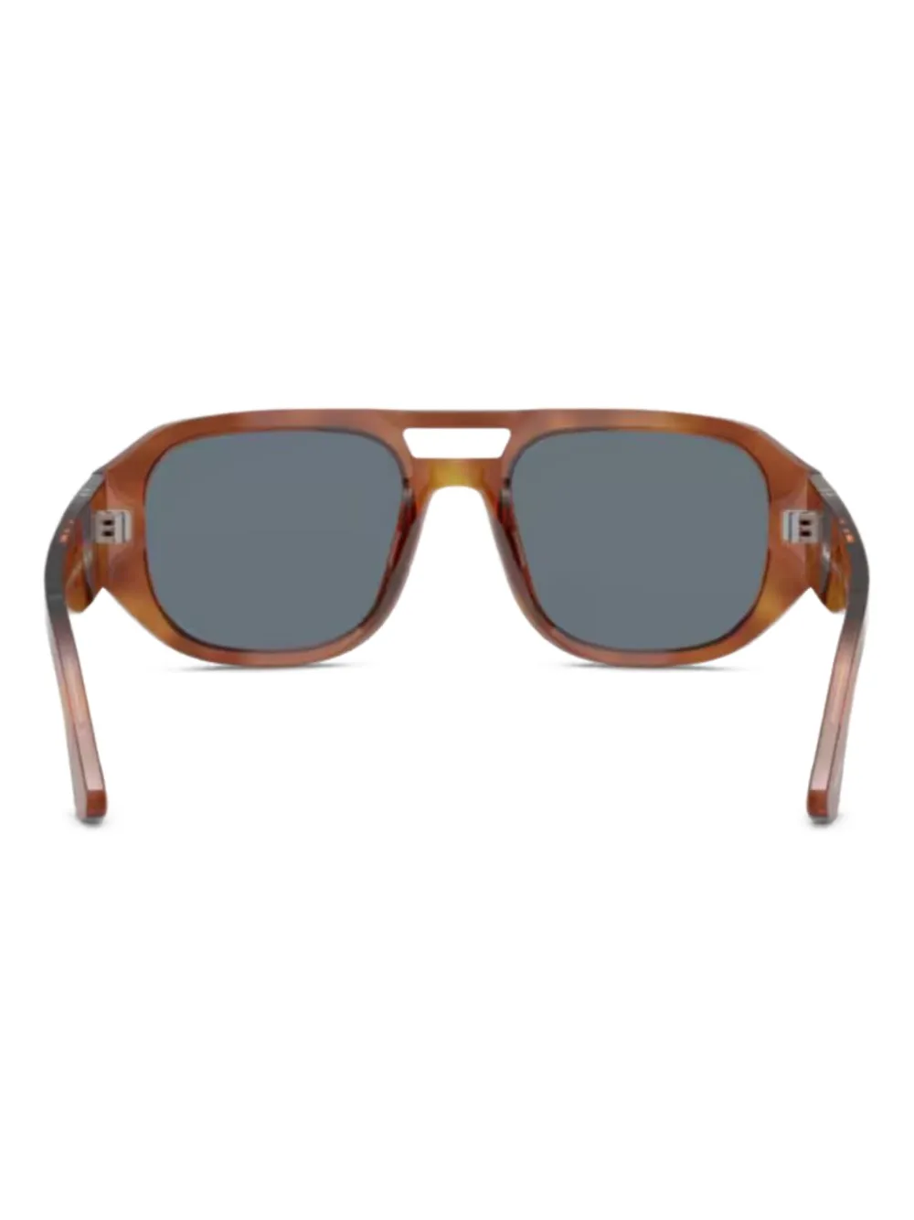 bruin rechthoekig montuur grijze glazen acetaat zilverkleurige details Deze bril wordt verkocht met een beschermhoes.