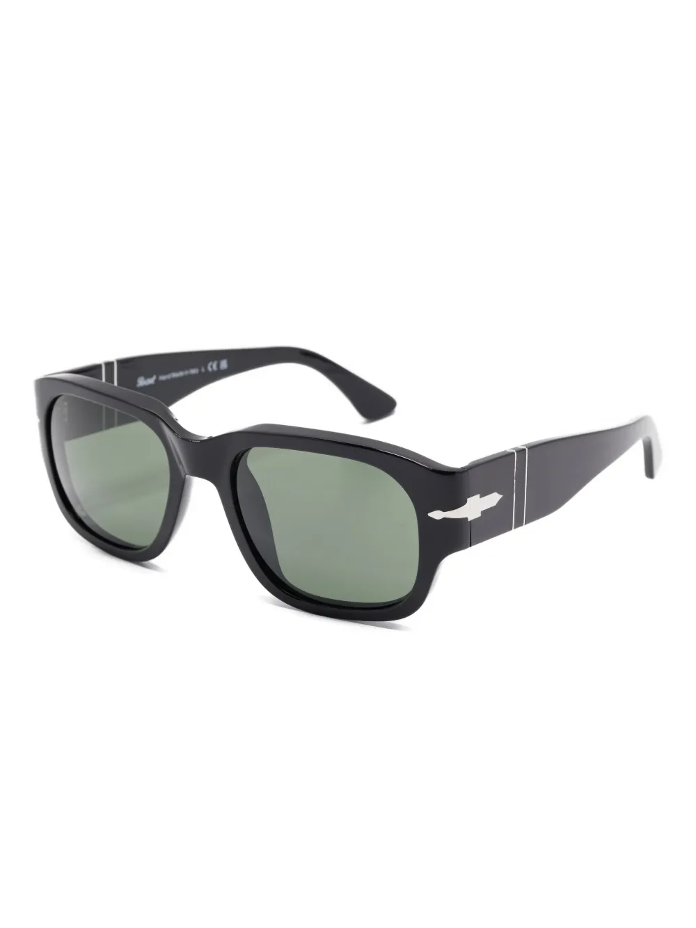 zwart groene glazen zilverkleurige details rechthoekig montuur rechte pootjes Deze bril wordt verkocht met een beschermhoes.