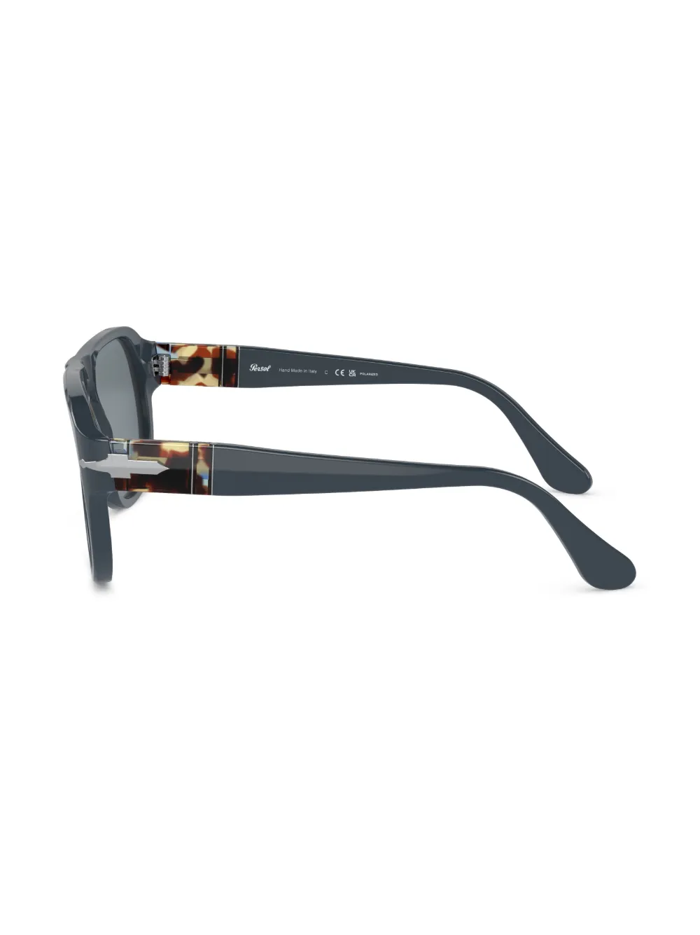 Marineblauw, acetaat, blauwe glazen, rond montuur, rechte pootjes en gebogen uiteinde. Deze bril wordt verkocht met een beschermhoes..