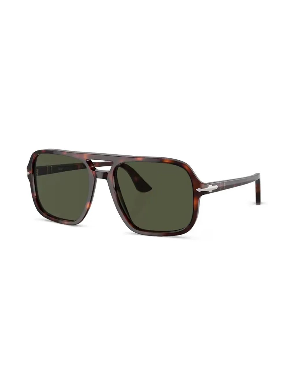 cederbruin acetaat schildpad montuur vierkant montuur groen getinte glazen rechte pootjes gebogen uiteinden Deze bril wordt verkocht met een beschermhoes.