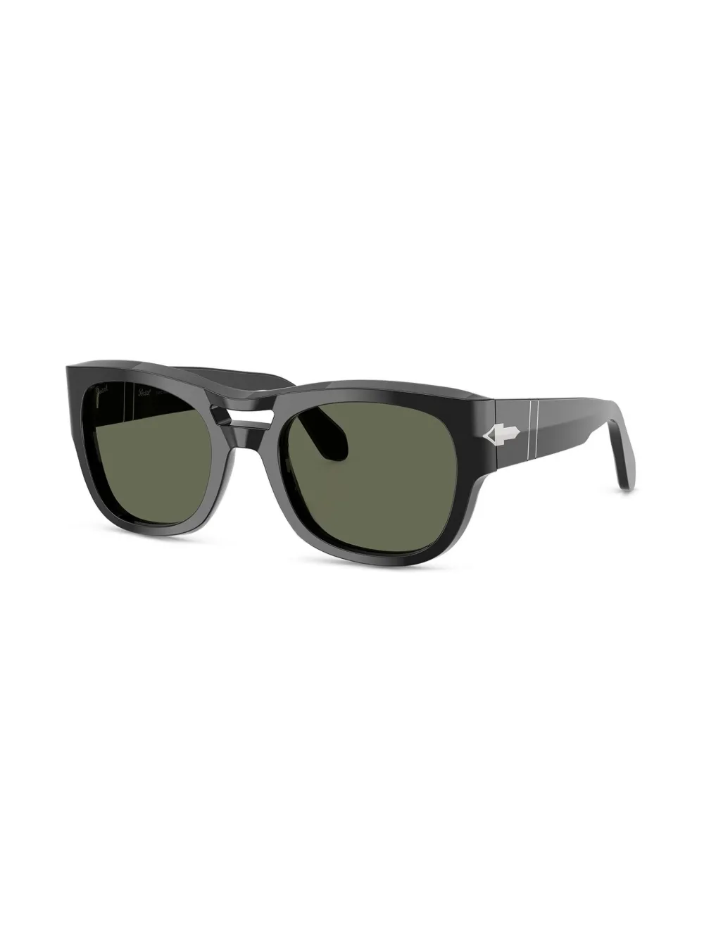 zwart acetaat vierkant montuur groen getinte glazen dubbele neusbrug rechte pootjes gebogen uiteinden Deze bril wordt verkocht met een beschermhoes.