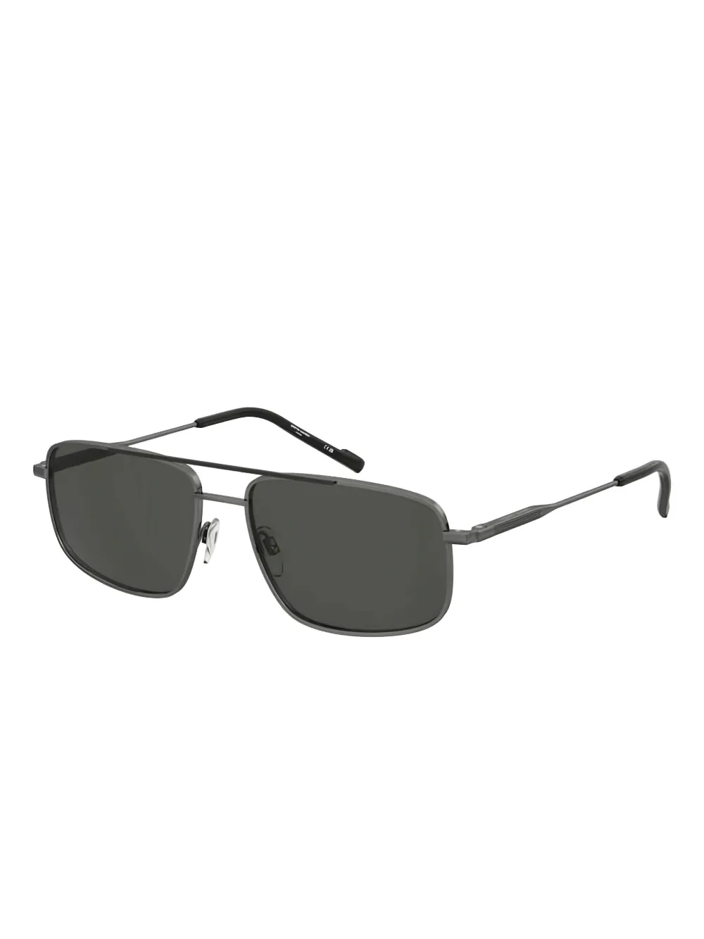 zilverkleurig vierkant montuur dubbele neusbrug gekleurde glazen neuskussentjes Deze bril wordt verkocht met een beschermhoes.