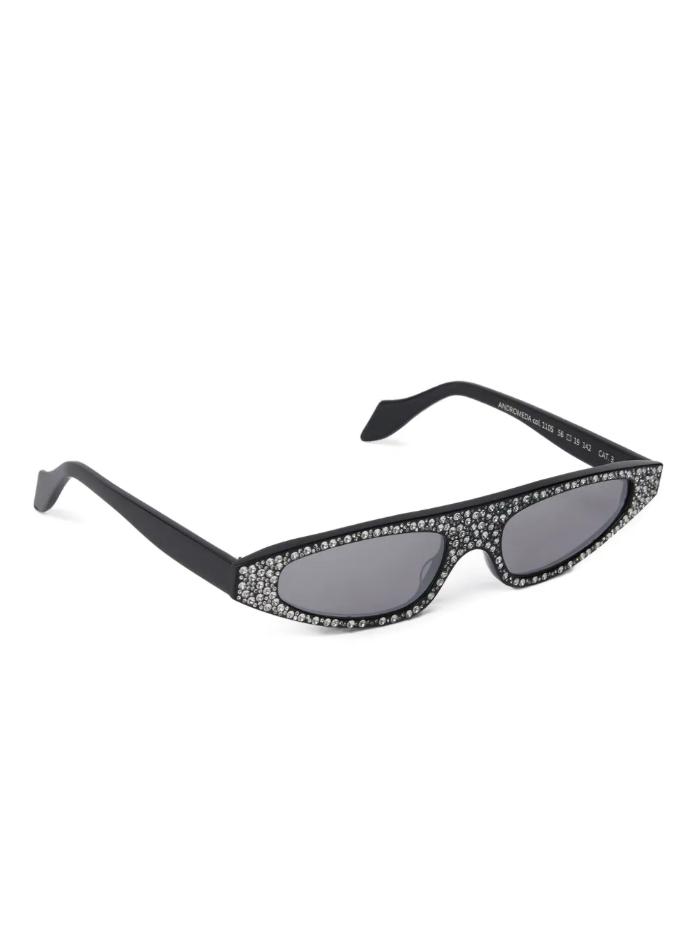 zwart geometrisch montuur verfraaid met kristallen grijze glazen Deze bril wordt verkocht met een beschermhoes.