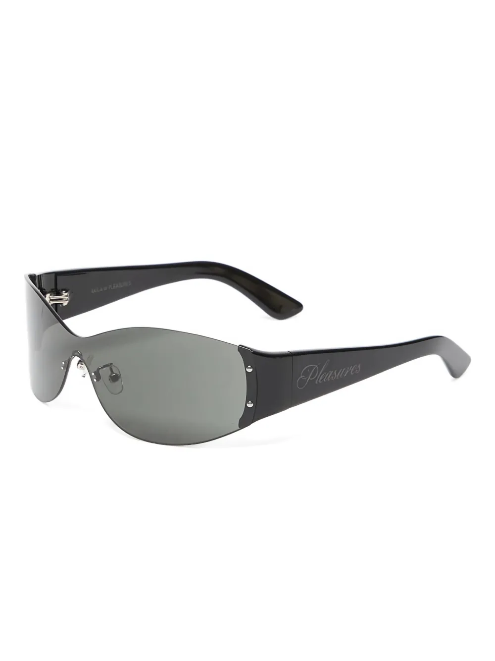 zwart wikkelmontuur grijze glazen subtiel logo Deze bril wordt verkocht met een beschermhoes.