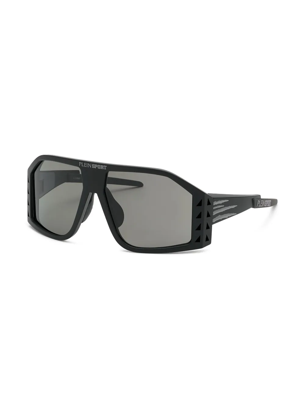 zwart matte afwerking logoprint op de voorkant logoprint op de brillenpoot oversized montuur grijze glazen glazen met UV-bescherming verhoogde neusbrug rechte pootjes rechte afwerking Deze bril wordt verkocht met een beschermhoes.