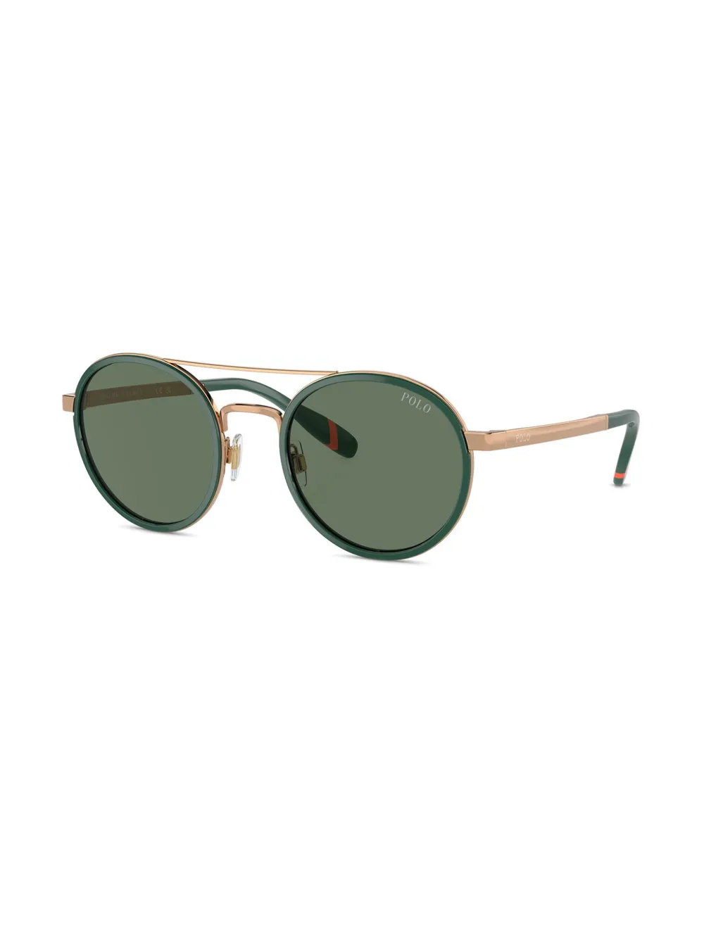 groen metaal rond montuur groen getinte glazen neuskussentjes logoprint op de brillenpoot rechte pootjes gebogen uiteinden contrasterende afwerking Deze bril wordt verkocht met een beschermhoes.