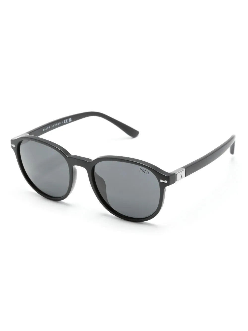 zwart acetaat matte afwerking rond montuur gekleurde glazen lens sticker UV-bescherming pootje met gegraveerd logo rechte pootjes gebogen uiteinde Deze bril wordt verkocht met een beschermhoes.