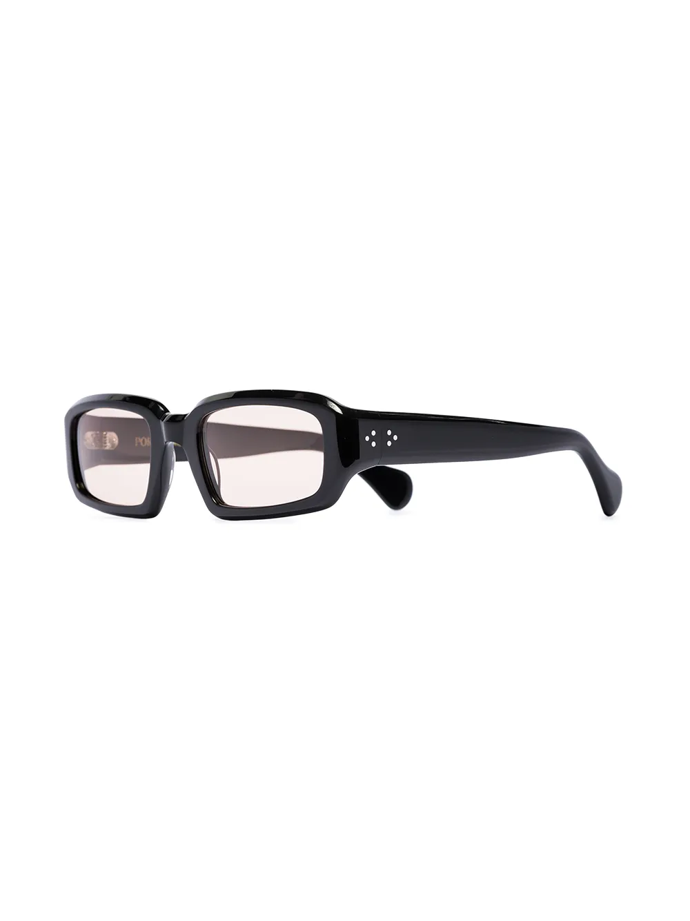 Mektoub zonnebril met rechthoekig montuur van PORT TANGER voorzien van gestrekte armen met gebogen uiteinden, scharnieren structuur, zilverkleurige studs, gekleurde glazen en logo aan de binnenkant van de armen.