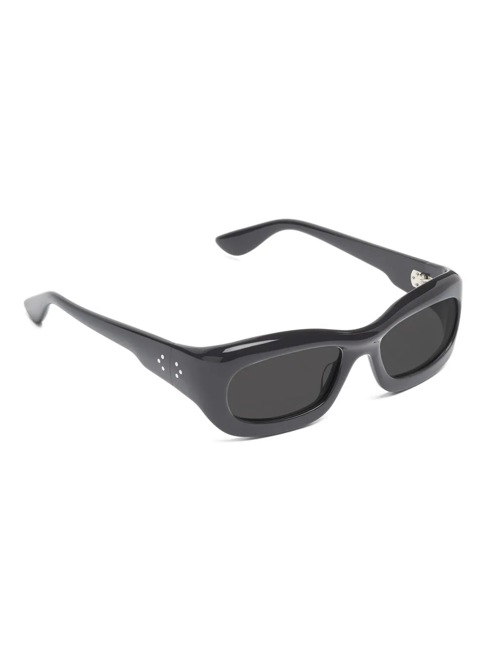 zwart rechthoekig montuur grijze glazen subtiel logo dikke pootjes gladde afwerking Deze bril wordt verkocht met een beschermhoes.