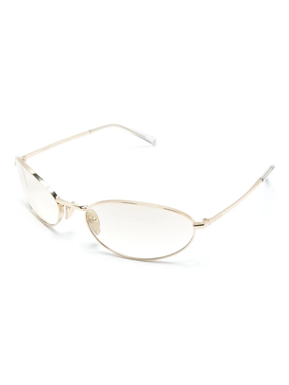goudkleurig metaal gepolijst effect ovaal montuur glazen met kleurverloop neuskussentjes pootje met gegraveerd logo rechte poten met gebogen uiteinden Deze bril wordt verkocht met een beschermhoes.