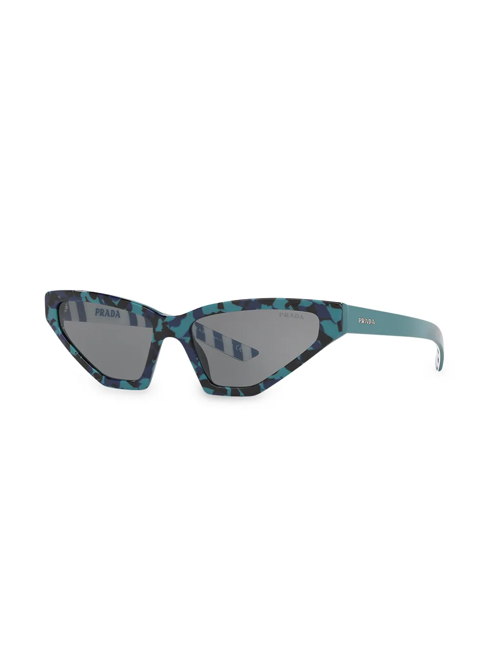 Disguise zonnebril met camouflage van Prada Eyewear voorzien van gestrekte armen met hoekig uiteinde, logo aan de buitenkant van de armen, camouflage-print en gekleurde glazen. Het artikel is inclusief beschermende hoes.