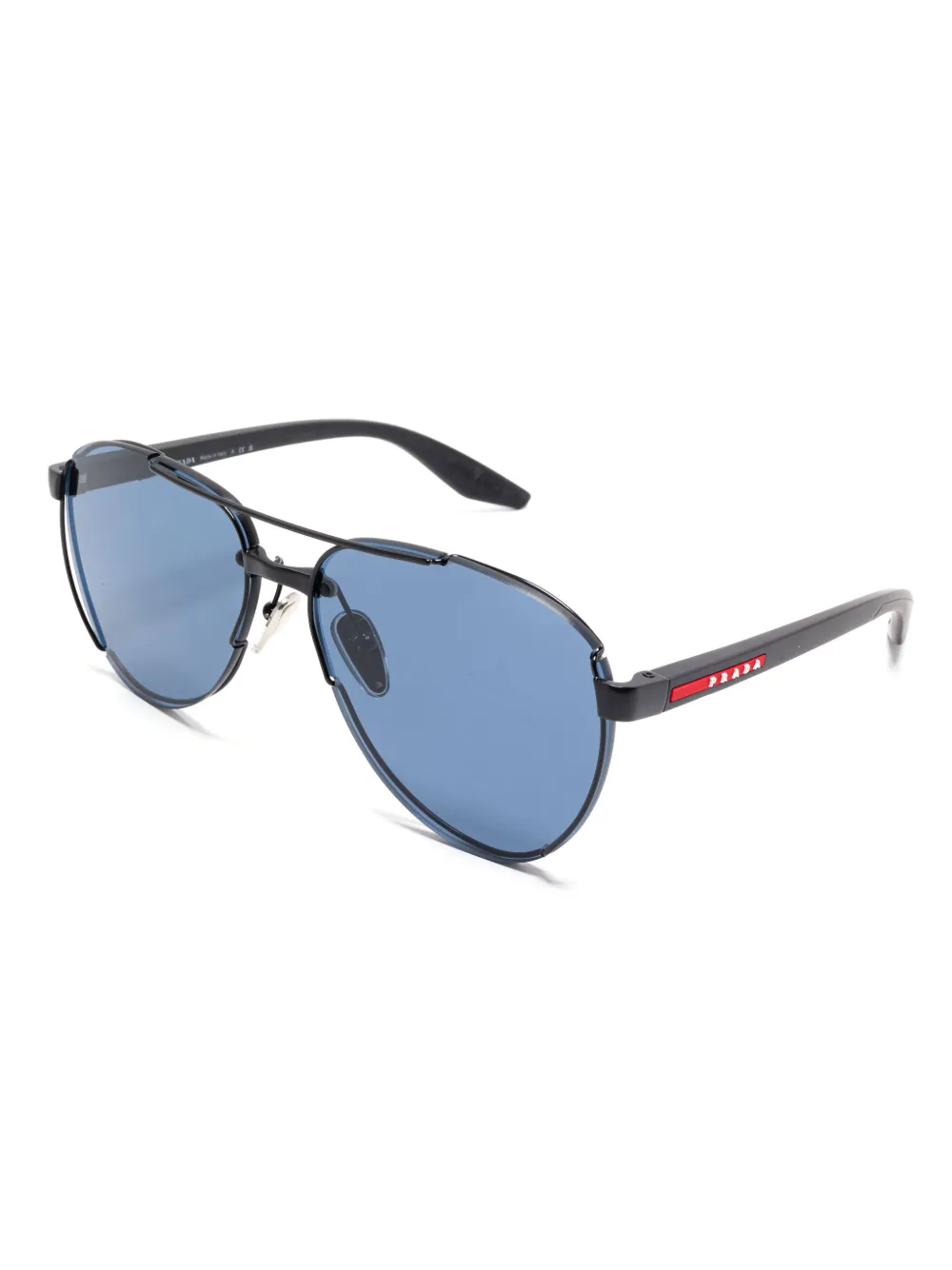 zwart/rood matte-effect piloten montuur blauwe glazen met UV-bescherming dubbele neusbrug neuskussentjes pootje met gegraveerd logo rechte poten met gebogen uiteinden Deze bril wordt verkocht met een beschermhoes.
