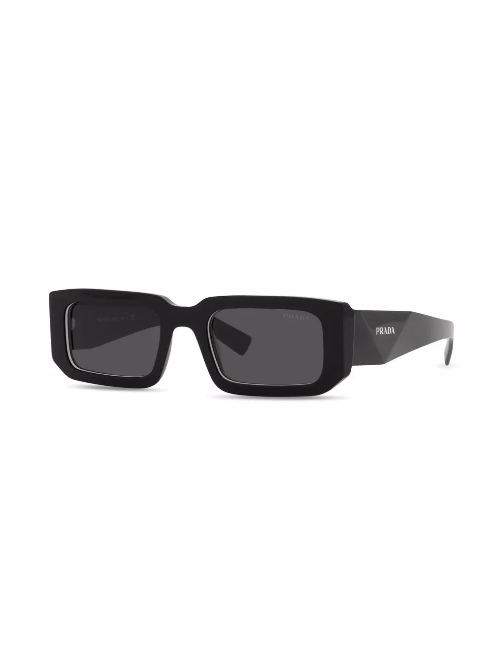 Rechthoekig montuur, lenssticker, gekleurde glazen, pootje gegraveerd met logo, rechte pootjes en gebogen uiteinde. Deze bril wordt verkocht met een beschermhoes..