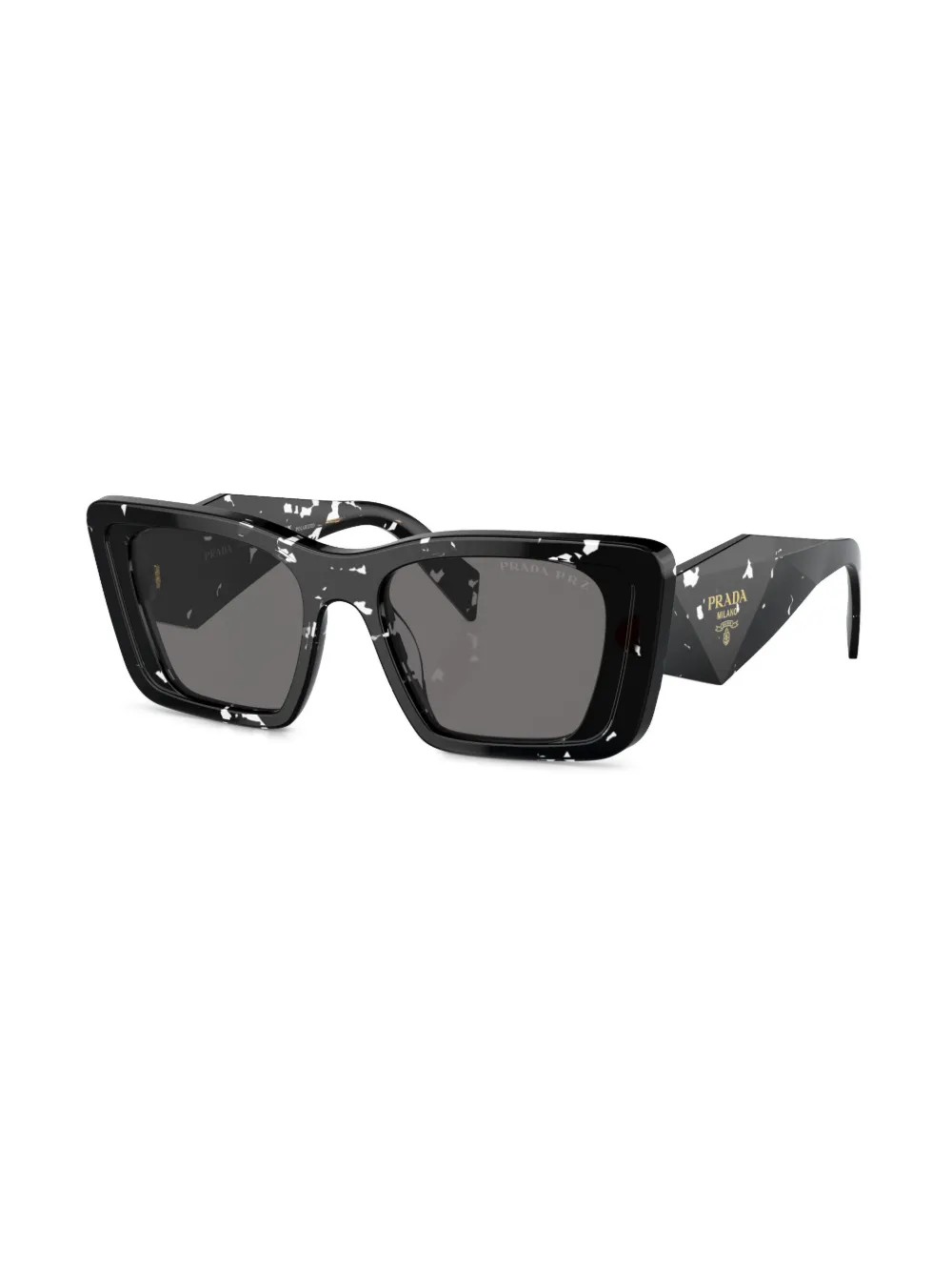 zwart oversized montuur gekleurde glazen schildpadschild effect rechte pootjes gebogen uiteindenlogoprint op de pijpen logoprint op de brillenpoot driehoekig email logo Deze bril wordt verkocht met een beschermhoes.