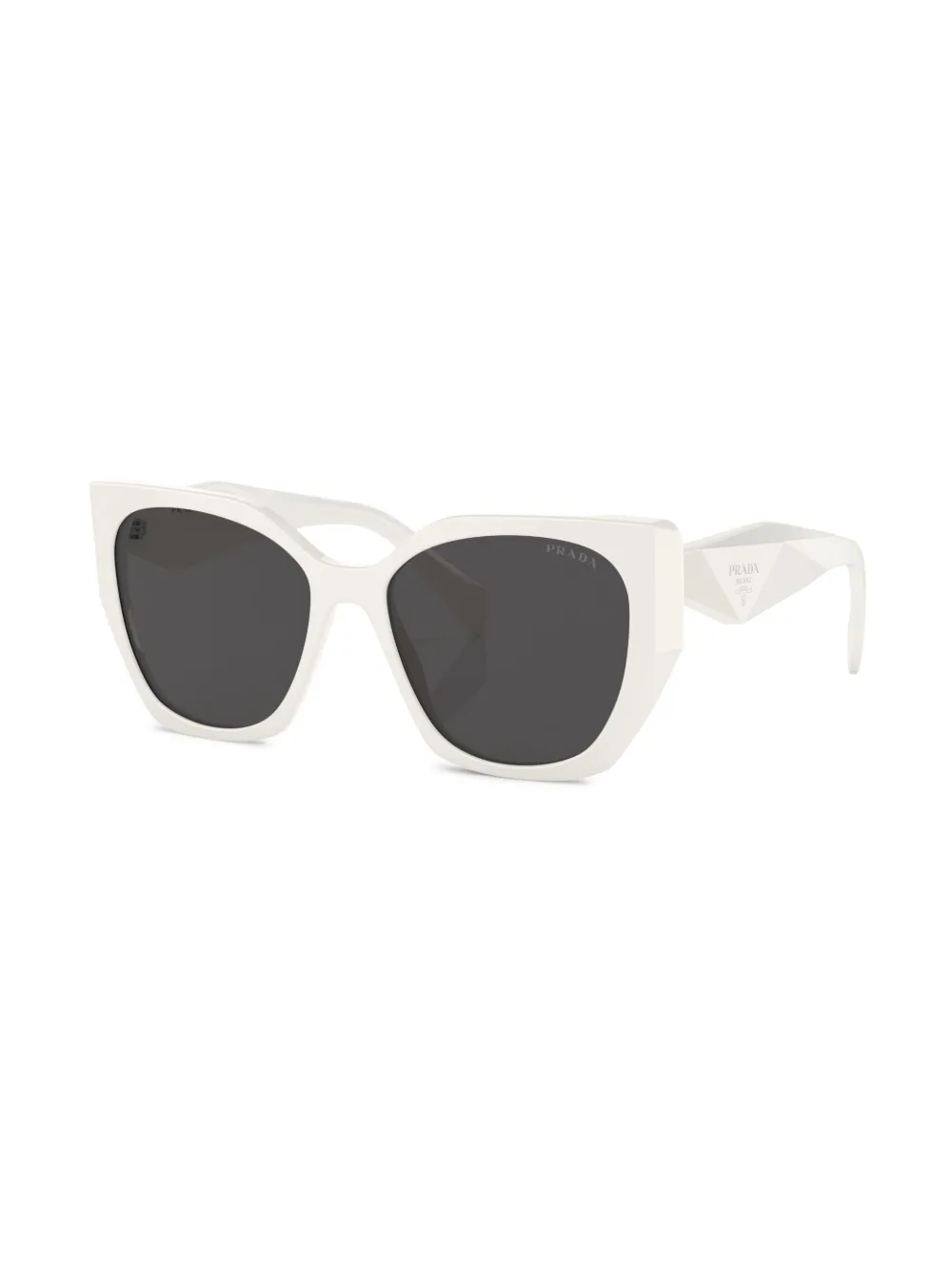 wit oversized montuur gekleurde glazen rechte pootjes gebogen uiteindenlogoprint op de pijpen driehoekig email logo Deze bril wordt verkocht met een beschermhoes.