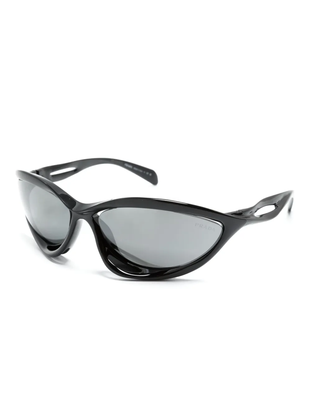 zwart acetaat geometrisch montuur grijze glazen logoprint op het pootje gewelfde pootjes uitgesneden detail rechte pootjes Deze bril wordt verkocht met een beschermhoes.