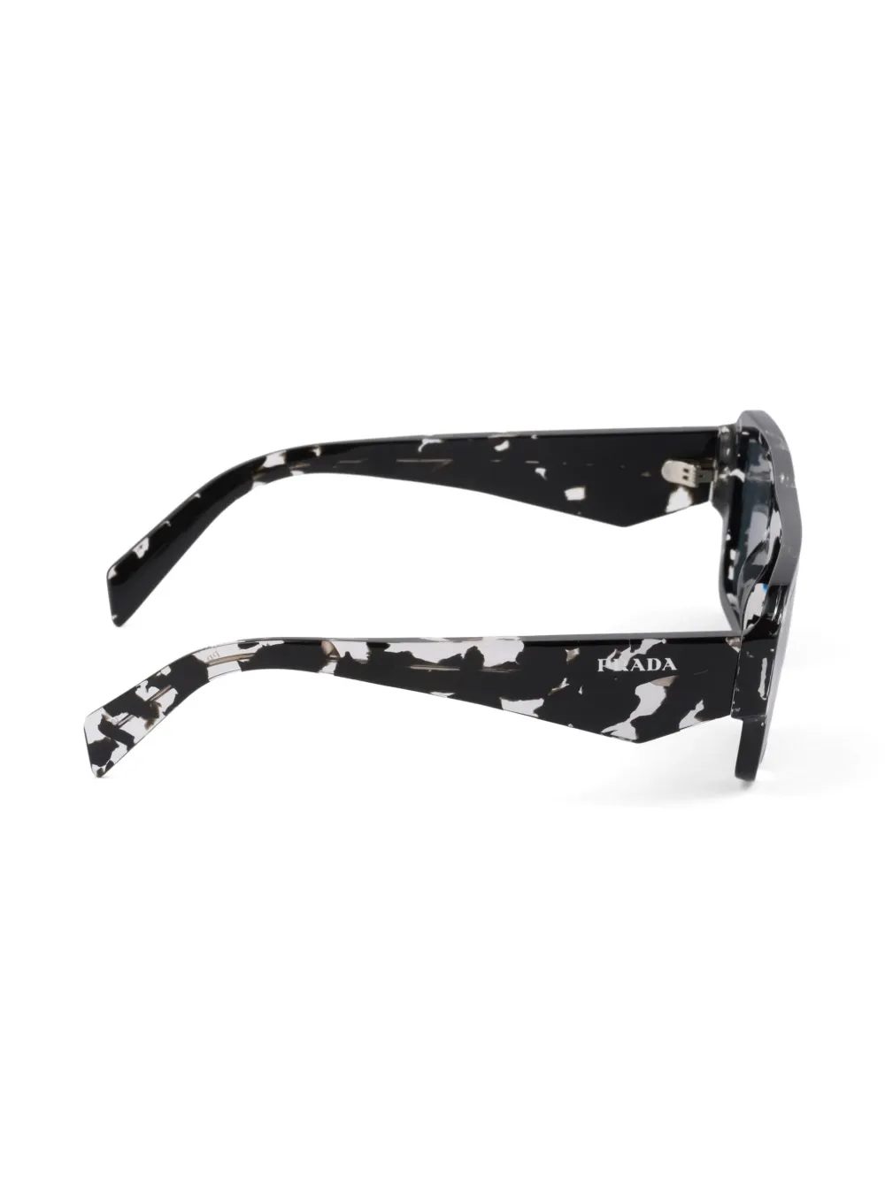 zwart/wit marmeren patroon logoprint op de brillenpoot verhoogde neusbrug neuskussentjes vierkant montuur blauwe glazen glazen met UV-bescherming oversized pootjes gebogen uiteinden Alle brillen op FARFETCH worden verkocht met glazen die niet op sterkte zijn.
