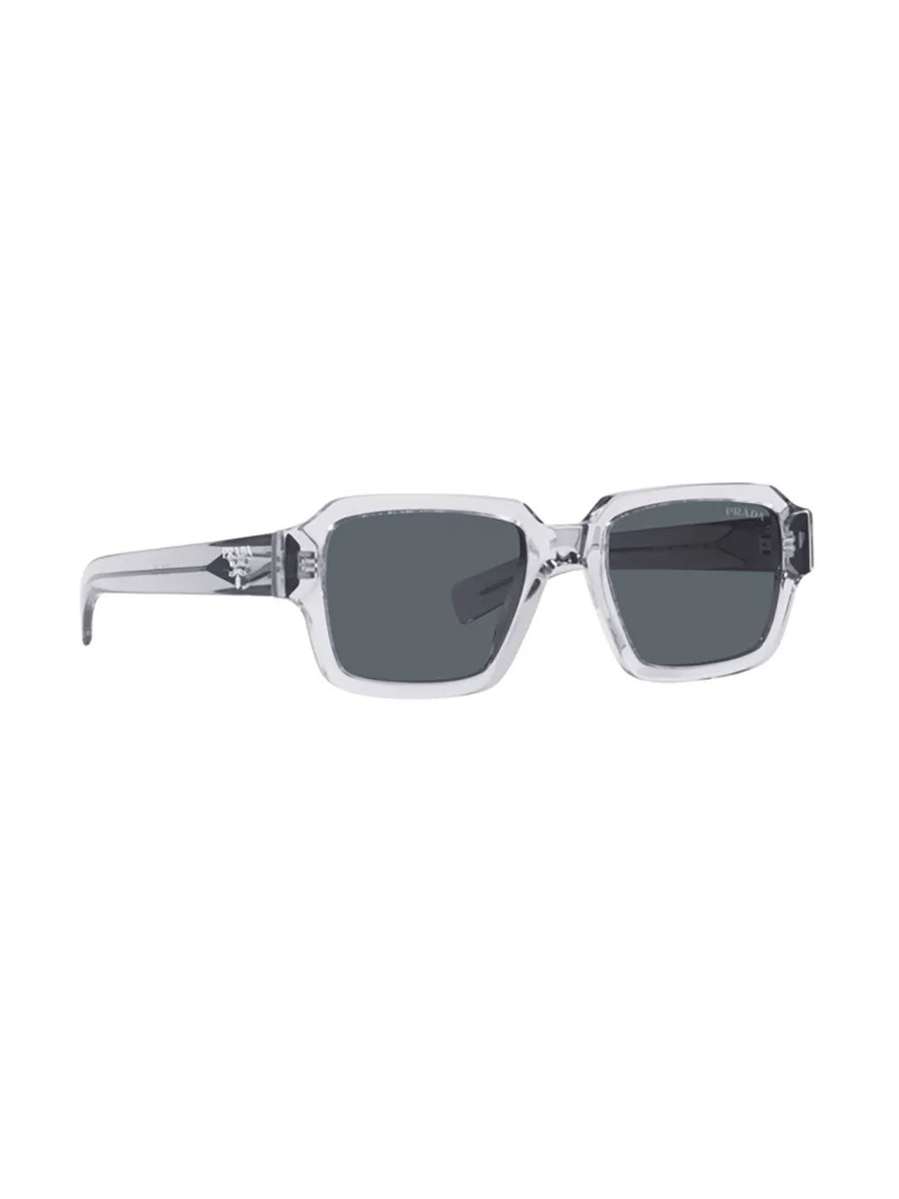 grijs acetaat doorzichtig design vierkant montuur gekleurde glazen rechte pootjes gebogen uiteinden Deze bril wordt verkocht met een beschermhoes.
