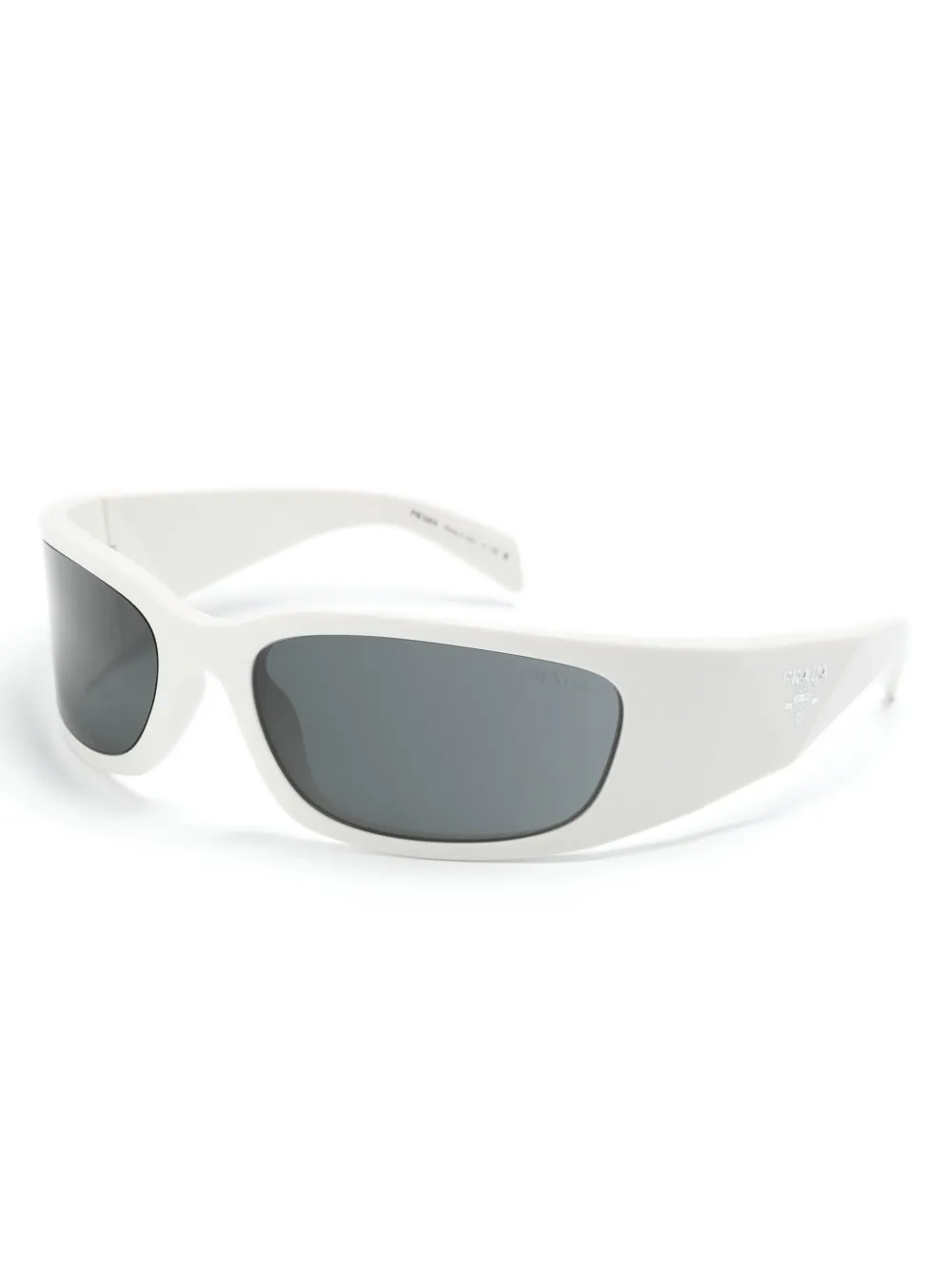 optisch wit acetaat biker montuur gekleurde glazen pootje met gegraveerd logo gebogen pootjes en uiteinden Deze bril wordt verkocht met een beschermhoes.