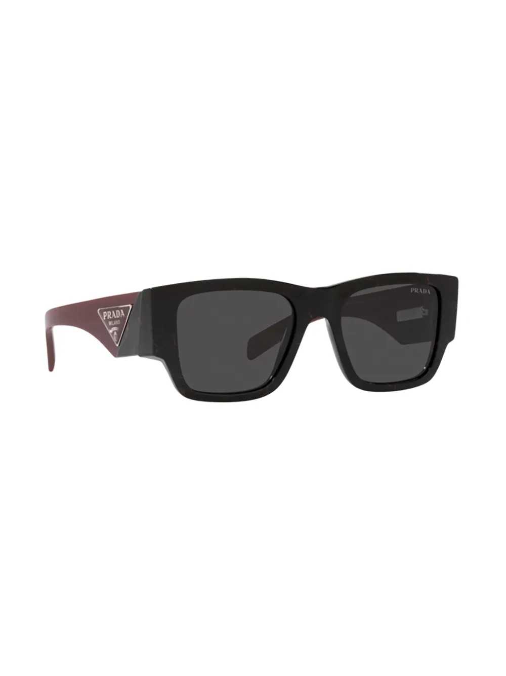 zwart/bordeauxrood acetaat vierkant montuur tweekleurig design gekleurde glazen geschulpte pootjes driehoekig logo gebogen uiteinden Deze bril wordt verkocht met een beschermhoes.