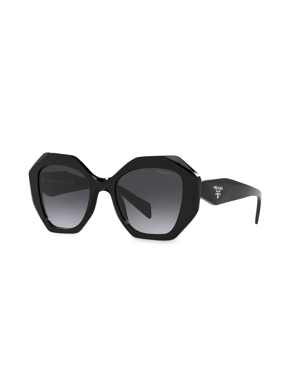 Oversized montuur, glazen met kleurverloop, lenssticker, logoprint op het pootje en gebogen uiteinde. Materiaal: acetaat. We weten dat je ervoor zorgt dat jouw nieuwe aankoop niets overkomt, maar voor de zekerheid zit er een beschermende hoes bij deze bril.