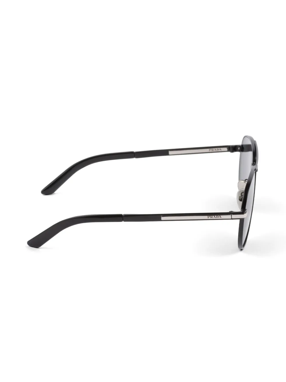 zwart metaal piloten montuur grijze glazen glazen met UV-bescherming dubbele neusbrug neuskussentjes logoplakkaat op de mouw rechte pootjes gebogen uiteinden Deze bril wordt verkocht met een beschermhoes.