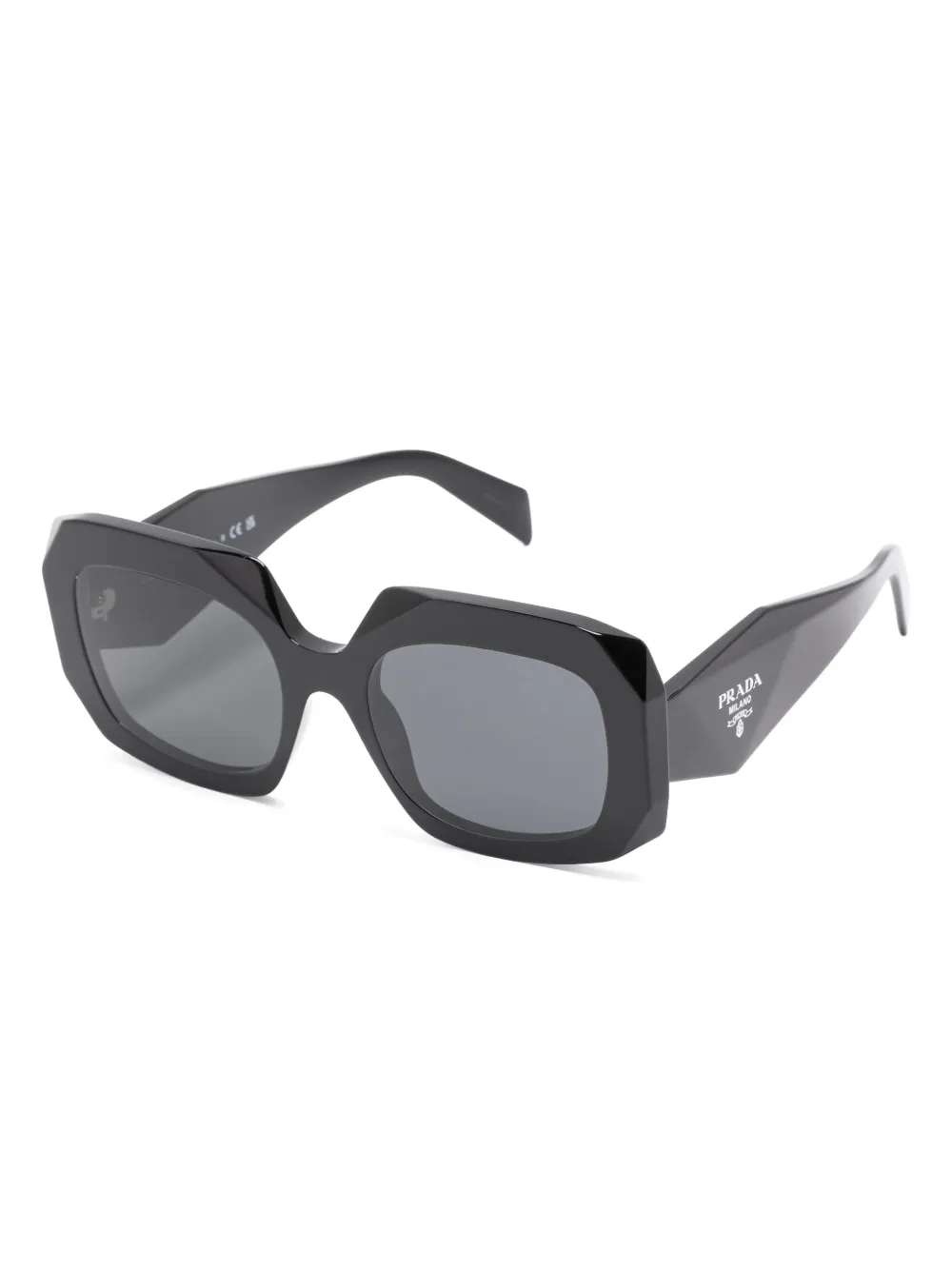 zwart vierkant montuur neuskussentjes geschulpte pootjes gebogen uiteinden blauwe glazen Deze bril wordt verkocht met een beschermhoes.