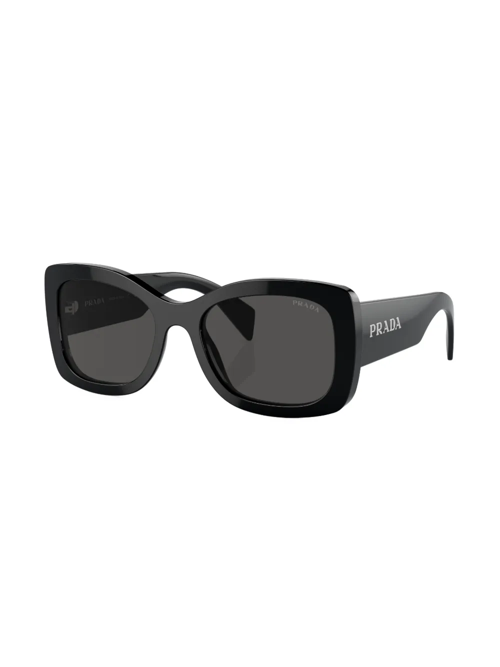 Zwart, acetaat, zilverkleurig logo, vierkant montuur, grijze glazen, oversized pootjes en gebogen uiteinde. Deze bril wordt verkocht met een beschermhoes..