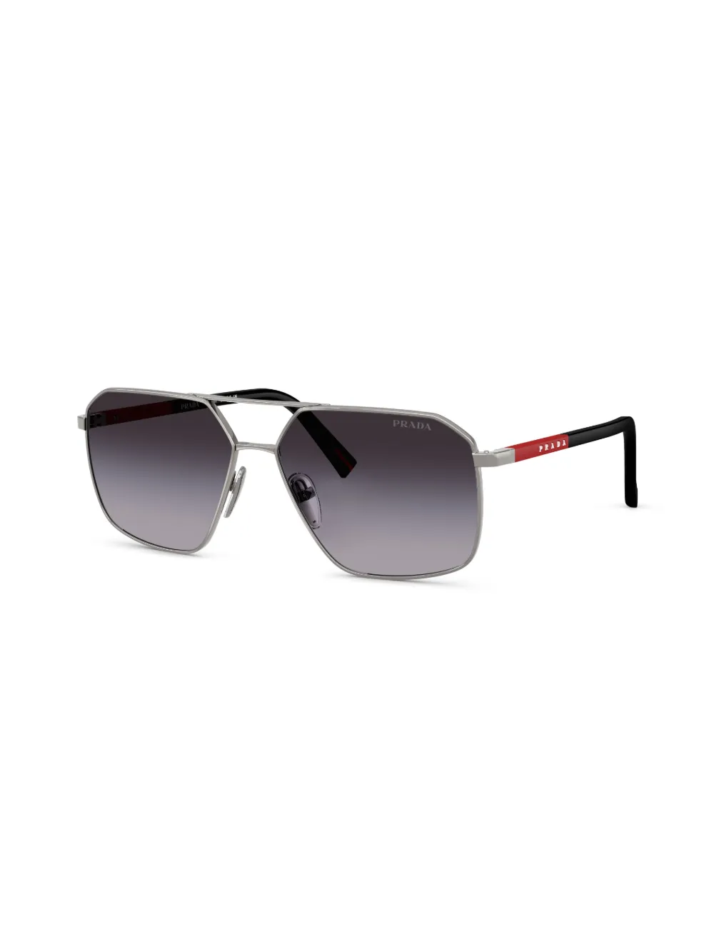 gunmetal grijs metaal logoprint op de brillenpoot vierkant montuur glazen met kleurverloop rechte pootjes neuskussentjes