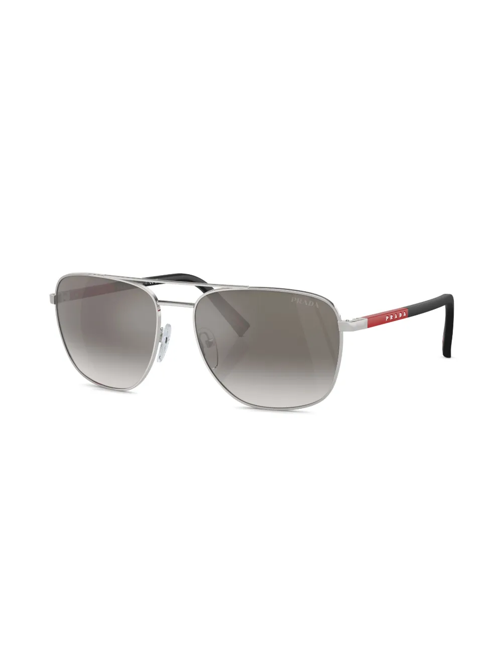 zilverkleurig vierkant montuur glazen met kleurverloop logoprint op de brillenpoot neuskussentjes rechte pootjes gebogen uiteinden Deze bril wordt verkocht met een beschermhoes.