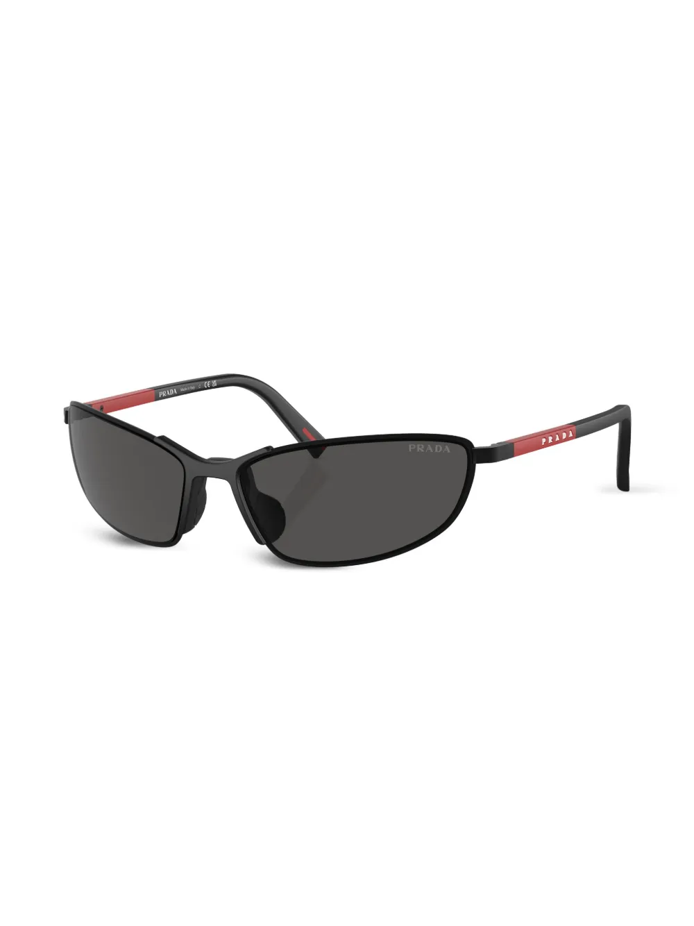 zwart metaal oversized montuur grijze glazen logoprint op de brillenpoot rechte pootjes gebogen uiteinden Deze bril wordt verkocht met een beschermhoes.