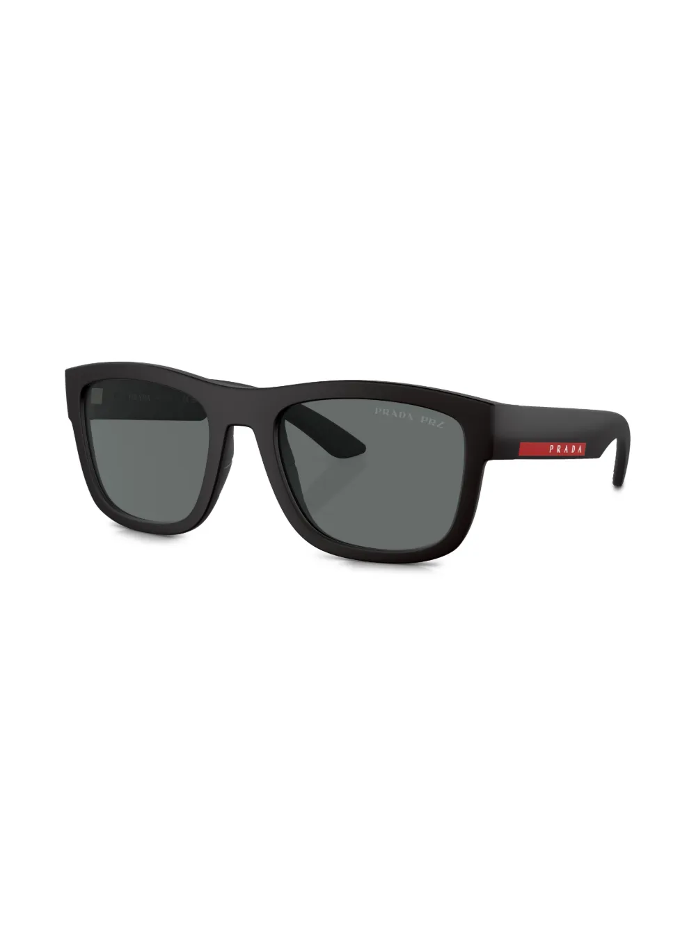 Zwart, vierkant montuur, grijze glazen, rechte pootjes en gebogen uiteinde. Deze bril wordt verkocht met een beschermhoes..