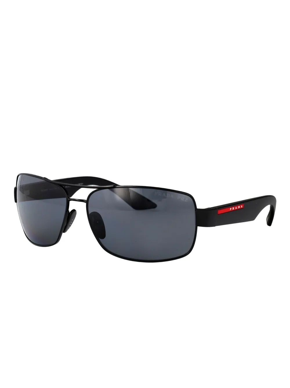 zwart rechthoekig montuur metalen afwerkingpolariserende glazen plastic tempels Prada tekst Deze bril wordt verkocht met een beschermhoes.