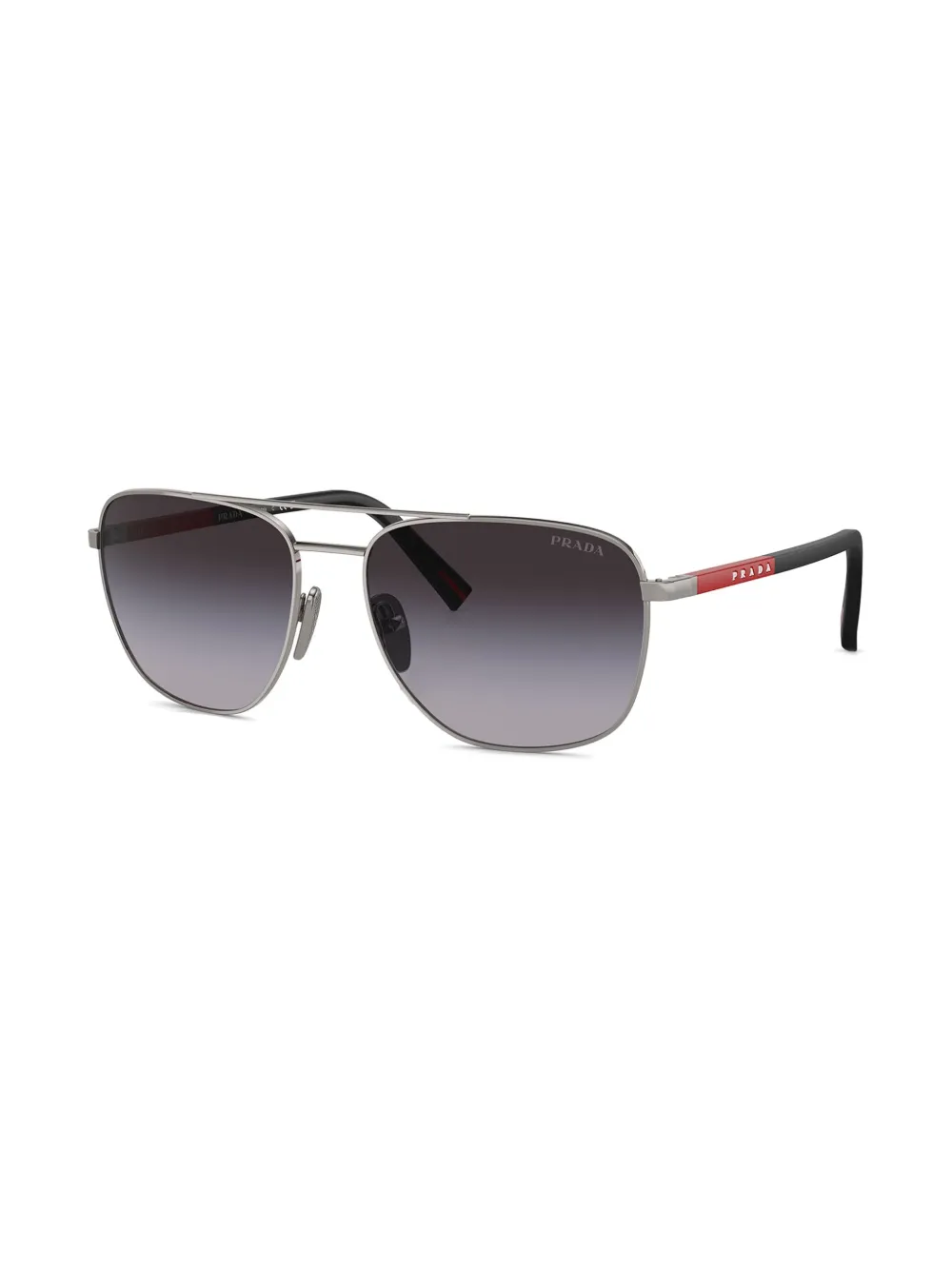 gunmetal grijs metaal ovaal montuur gekleurde glazen neuskussentjes rechte pootjes logoprint op de brillenpoot gebogen uiteinden Deze bril wordt verkocht met een beschermhoes.