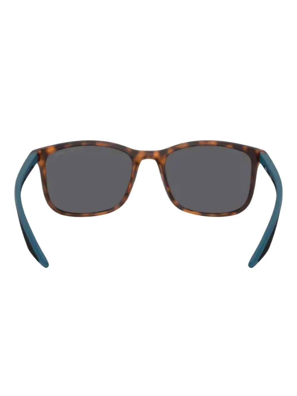 bruin vierkant montuur grijze glazen blauwe pootjes Prada tekst Deze bril wordt verkocht met een beschermhoes.