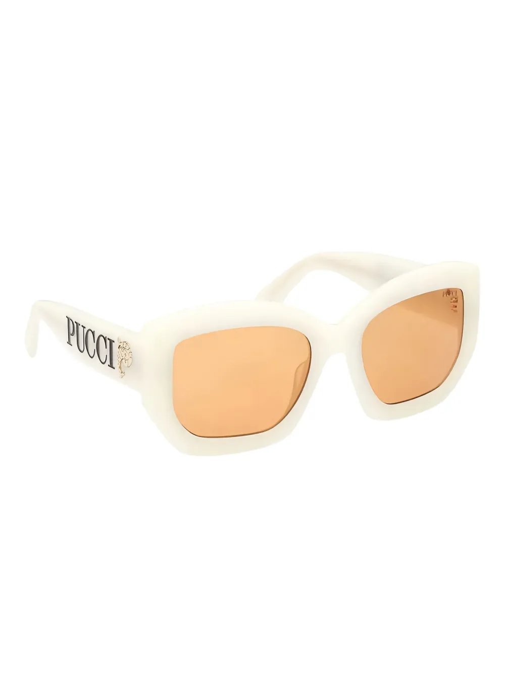 gebroken wit geometrisch montuur amberkleurige glazen logo op het pootje detail met logo-reliëf Deze bril wordt verkocht met een beschermhoes.