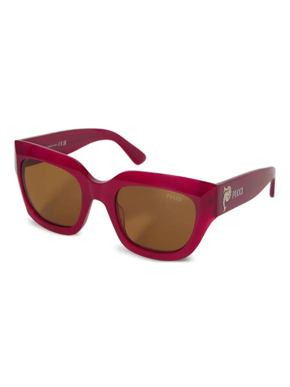karmijnrood vierkant montuur bruine glazen logodetail Deze bril wordt verkocht met een beschermhoes.
