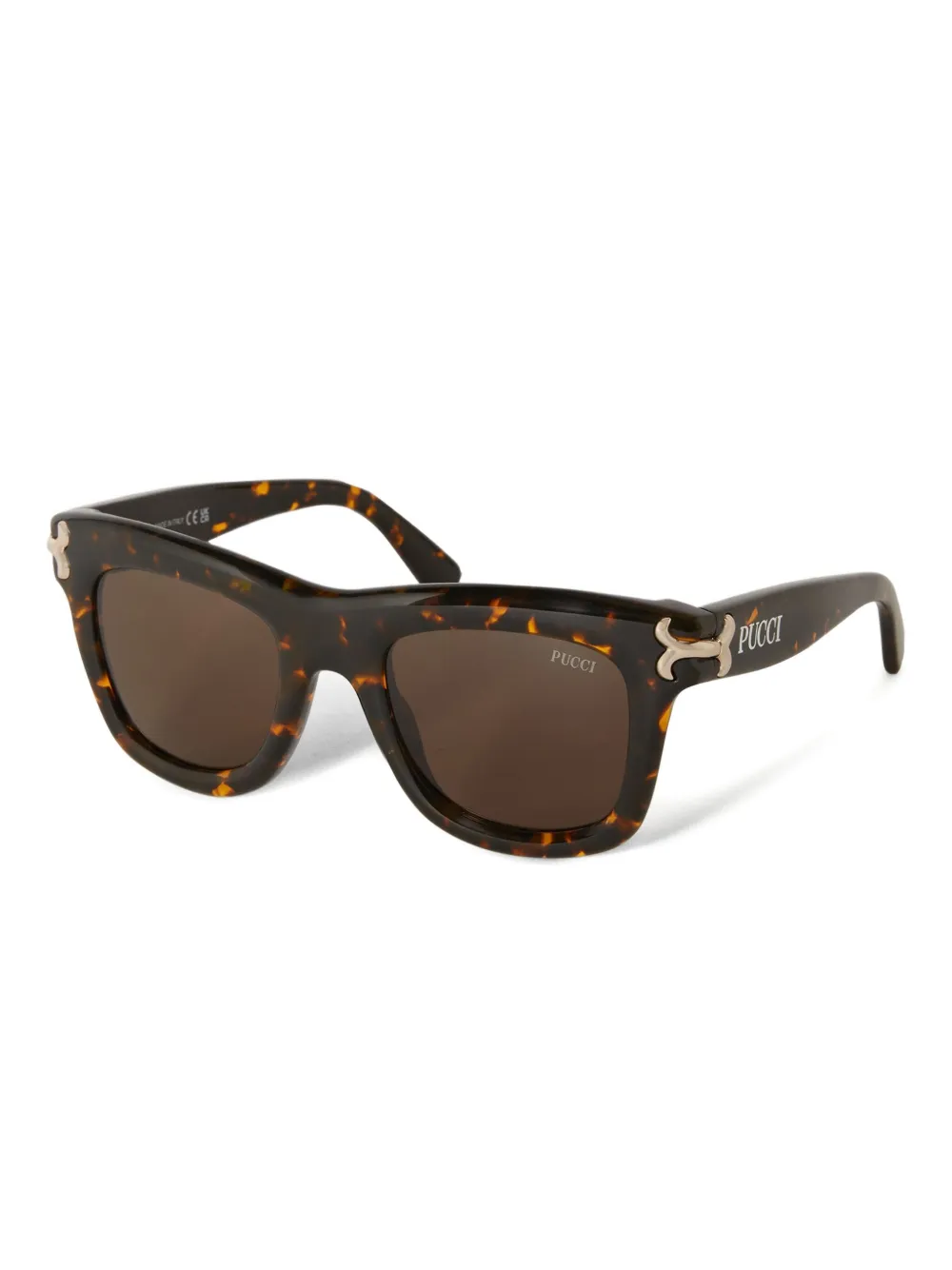 bruin schildpadschild-design vierkant montuur goudkleurige verfraaiing gekleurde glazen logodetail Deze bril wordt verkocht met een beschermhoes.