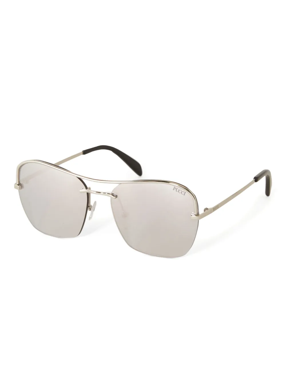 zilverkleurig vierkante vorm gespiegelde glazen metalen pootjes subtiel logo Deze bril wordt verkocht met een beschermhoes.