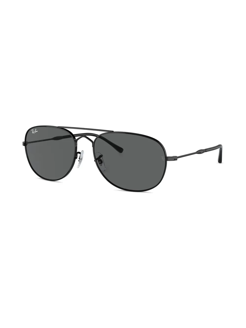 zwart metaal rond montuur grijze glazen dubbele neusbrug neuskussentjes pootjes met gegraveerd logo rechte pootjes gebogen uiteinden Deze bril wordt verkocht met een beschermhoes.