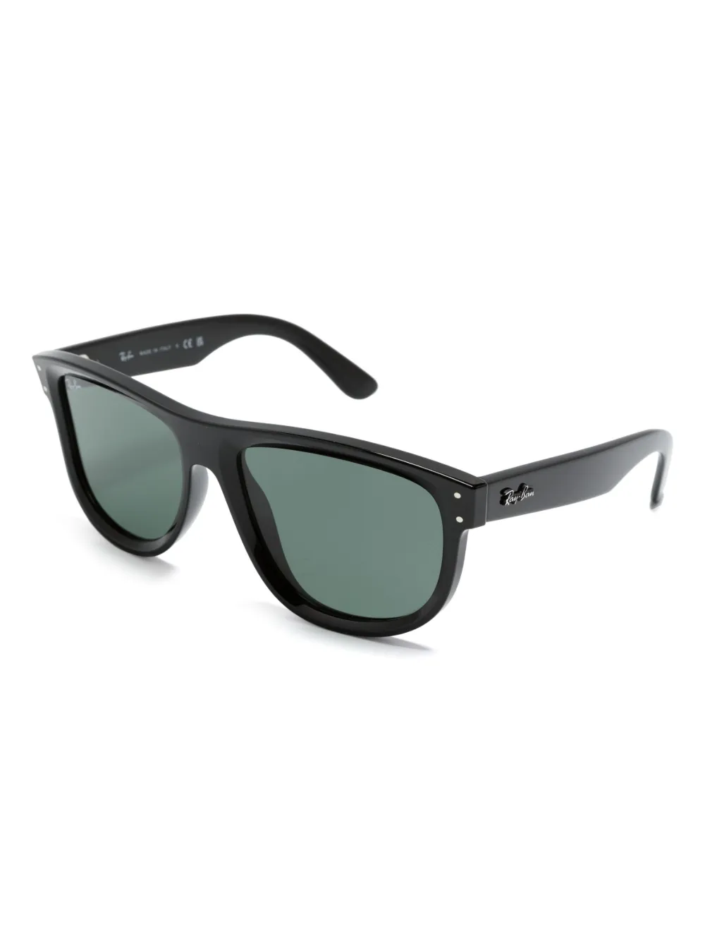 Zwart, acetaat, logoplakkaat op het pootje, vierkant montuur, gekleurde glazen, rechte pootjes en gebogen uiteinde. Deze bril wordt verkocht met een beschermhoes..
